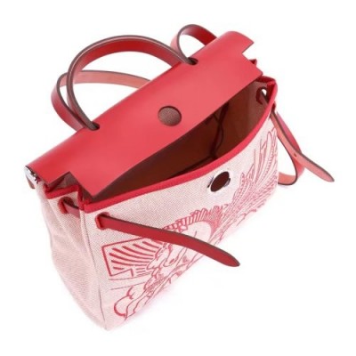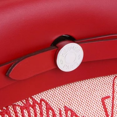 HERMES/Herbag 31 Pegasus red leather and canvas handbag messenger bag