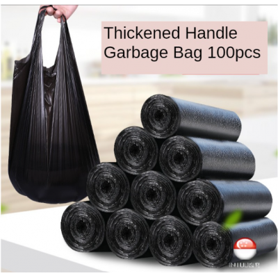 SG Ready Stock 100pcs 46*60cm Handle Breakpoint Garbage Bag Thickened Disposable Plastic Trash Bags